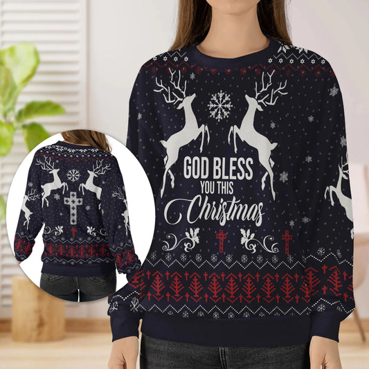 Christianartbag 3D Sweater, God Bless You This Christmas, Unisex Sweater, Christmas Gift.