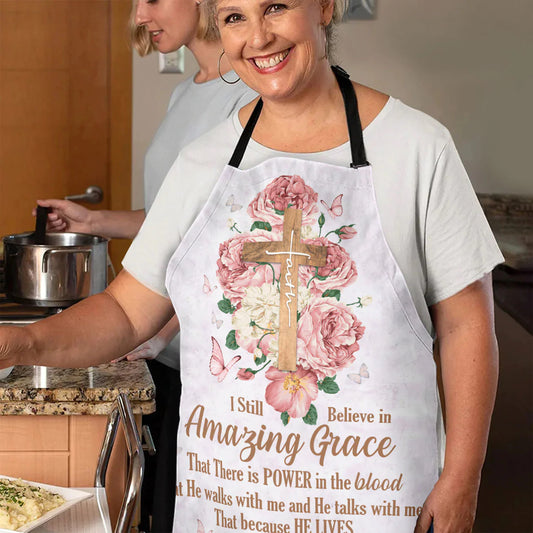 Christianartbag Apron, I Still Believe In Amazing Grace, Flower And Cross, Apron for Women, Gift For Women, Christmas Gift,