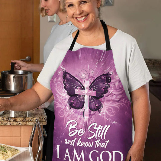 Christianartbag Apron, Be Still And Know That I Am God, Butterfly And Cross, Apron for Women, Gift For Women, Christmas Gift,