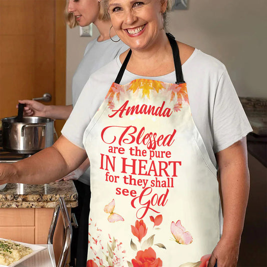 Christianartbag Apron, Blessed Are The Pure In Heart Flower And Butterfly Matthew 5:8, Apron for Women, Gift For Women, Christmas Gift,
