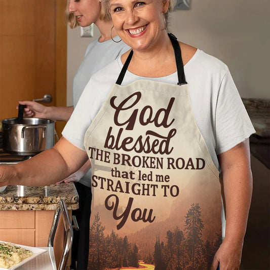 Christianartbag Apron, God Blessed The Broken Road, Apron for Women, Gift For Women, Christmas Gift,