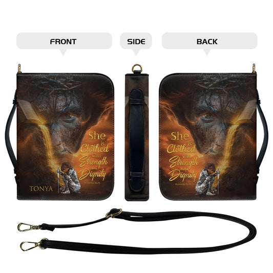 Personalized Bible Cover for Women – Lion of Judah & Warrior Design – Custom Name & Bible Verse – CHRISTIANARTBAG