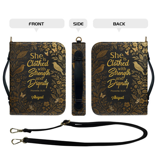 Elegant Floral Personalized Bible Cover for Women – Proverbs 31:25 Scripture Gift – Custom Name – CHRISTIANARTBAG