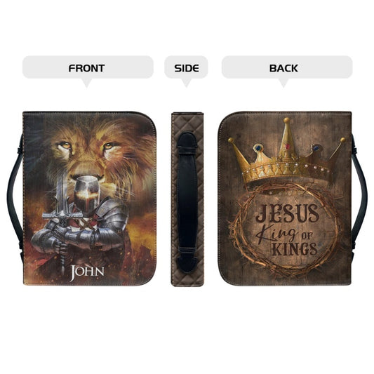 Christianartbag Bible Cover, Majestic Lion and Knight Bible Cover with 'Jesus King of Kings' Design - Name Customization Available, CAB01032324.