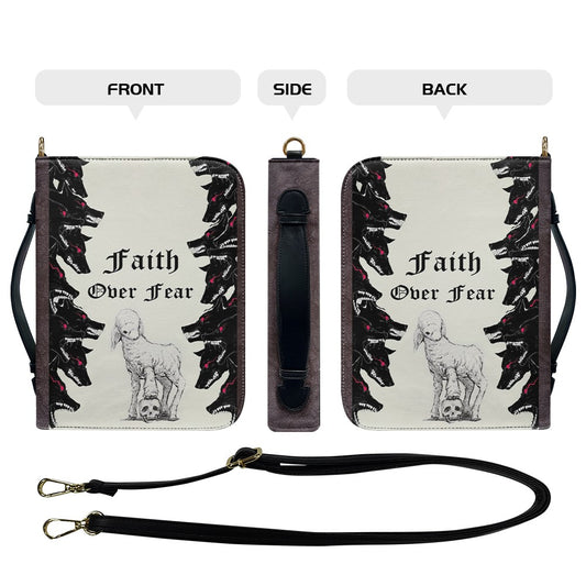 Personalized "Faith Over Fear" Bible Cover, Lamb and Wolves Christian Bible Case, Custom Name Spiritual Protector Bag - CHRISTIANARTBAG