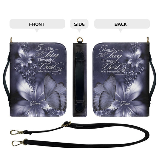Custom Name Bible Cover - "I Can Do All Things" Butterfly Design - Premium Christian Art Bag for Her