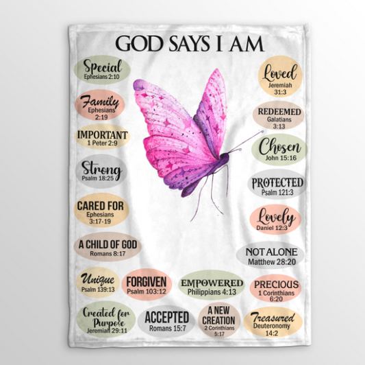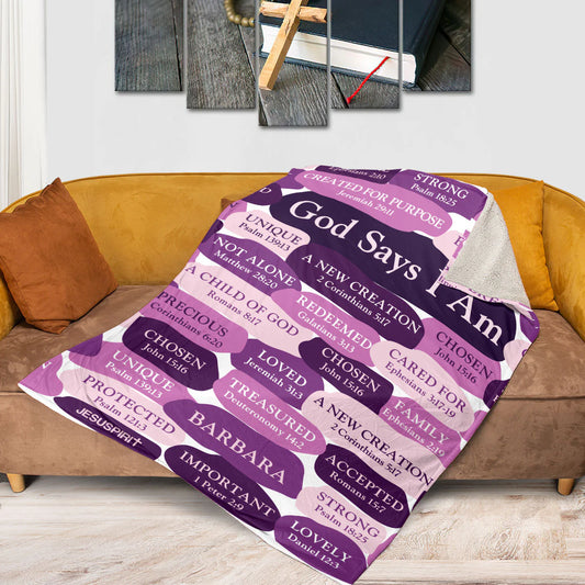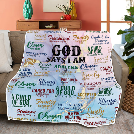 Christianart Blanket, God Says I Am, Christian Blanket, Bible Verse Blanket, Personalized Blanket, Christmas Gift, CABBK01111123.