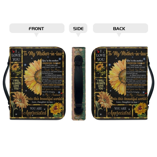 Christianartbag Bible Cover, To My Mom-in-Law Sunflower Bible Cover, Personalized Bible Cover, Mom Bible Cover, Mother Days Gifts, CAB09201223.
