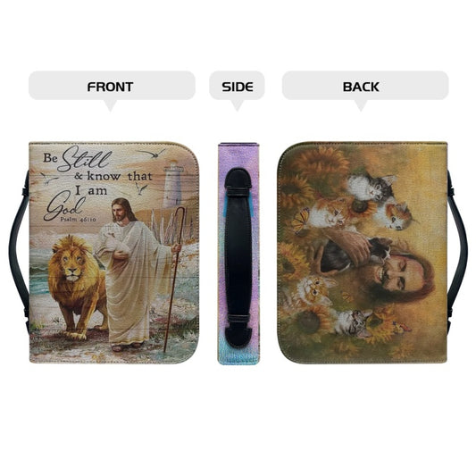 Christianartbag Bible Cover, Be Still And Know That I Am God Bible Cover, Personalized Bible Cover, Christ Cat Lion Sheep Warrior Bible Cover, Christian Gifts, CAB01021123.