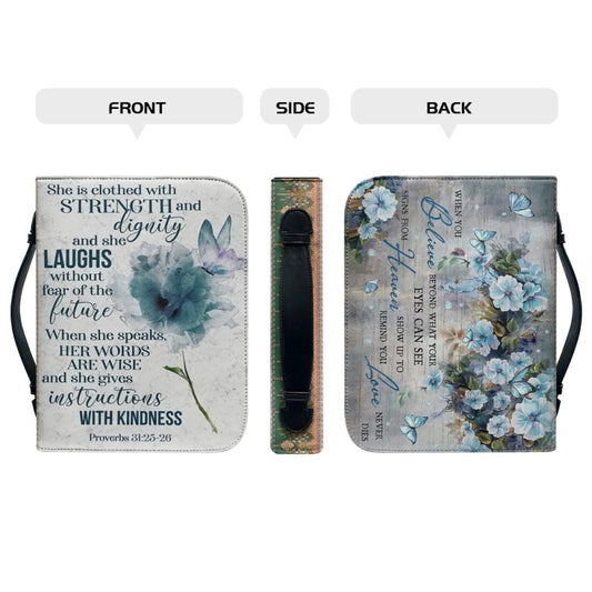 Christianartbag Bible Cover, She Is Clothed With Strength and Dignity Bible Cover, Personalized Bible Cover, Butterfly Flower Bible Cover, Christian Gifts, CAB01081123.
