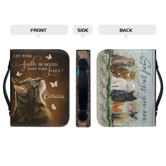 Christianartbag Bible Cover, Let Your Faith Be Bigger Than Your Lear Bible Cover, Personalized Bible Cover, Cat Bible Cover, Christian Gifts, CAB04251023.