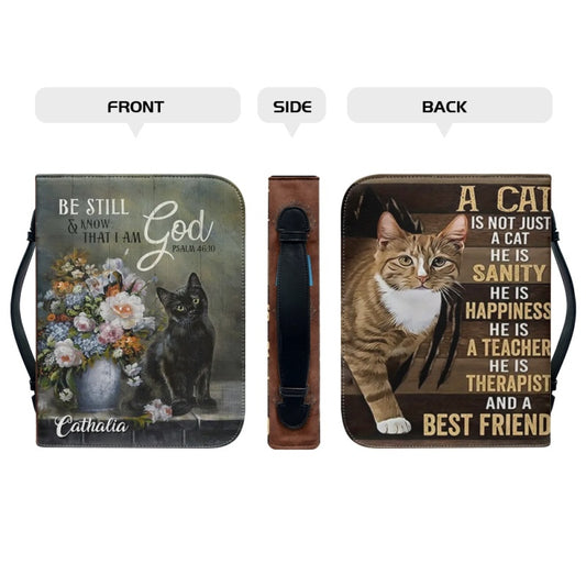 Christianartbag Bible Cover, Be Still and Know That I Am God Psalm 46:10 Bible Cover, Personalized Bible Cover, Cat Bible Cover, Christian Gifts, CAB06251023.