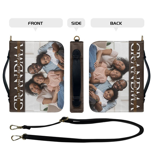 Personalized Bible Cover with Family Photo – Custom Name Christian Gift for Parents & Grandparents