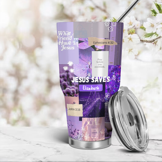 Christianartbag Drinkware, Daily Bible Personalized Tumbler , Personalized Mug, Purple Pink Tumbler, Christian Gift, CABTB12160823.