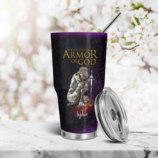 Christianartbag Drinkware, Put On The Full Armor Of God, Personalized Mug, Purple Pink Tumbler, Christian Gift, CABTB08160823.
