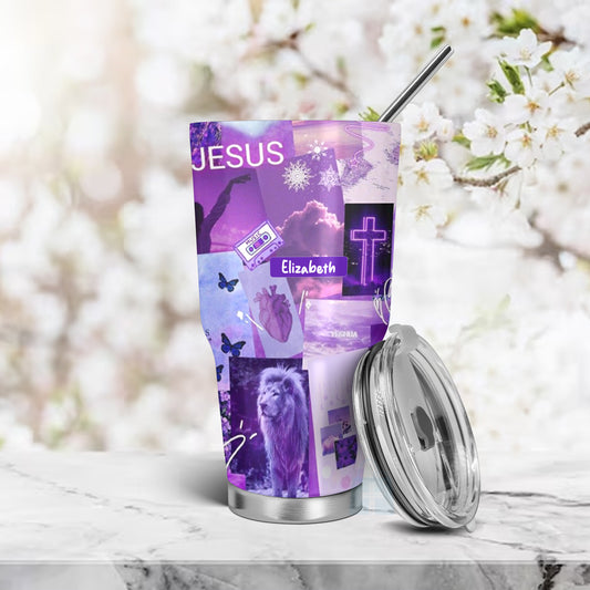 Christianartbag Drinkware, Daily Bible Personalized Tumbler , Personalized Mug, Purple Pink Tumbler, Christian Gift, CABTB09160823.