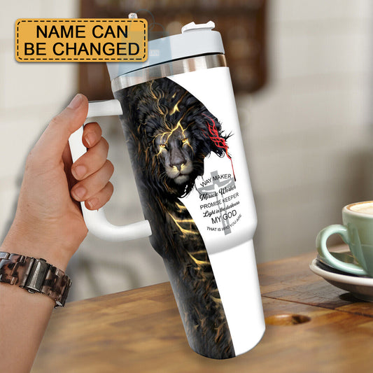 Christianartbag Drinkware, Lion Jesus King God Cross Personalized Tumbler With Handles, Personalized Tumbler With Handles, Tumbler, Christmas Gift, CABDR 01230124.