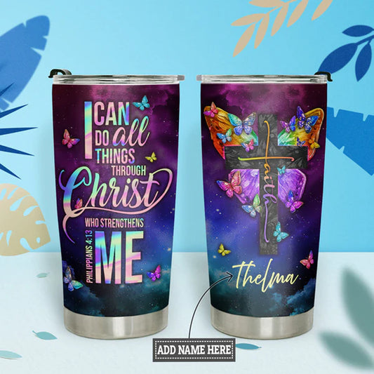 Christianartbag Drinkware, I Can Do All Things Through Christ Philippians 4:13, Personalized Mug, Stainless Steel Tumbler, Christmas Gift, CABTB01270723.