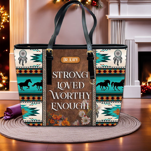 Christianartbag Handbags, I Am Strong Loved Worthy Enough Leather Handbag, Southwest Native American embroidery Handbag, Gifts for Women, CABLTB01101023.