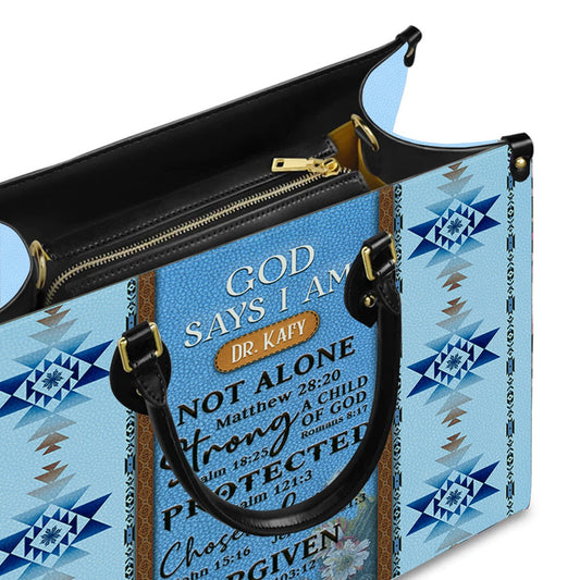 Customizable Luxury Leather Handbag - Personalized Elegance by CHRISTIANARTBAG - GOD Says I Am Blue Leather Handbag.
