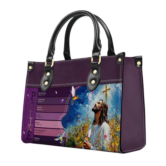Christianartbag Handbags- Uncover the sacred meaning of your name - Leather Handbag Purple - Personalized Bags - Gifts for Women - Christmas Gift - CABLTB01271024.