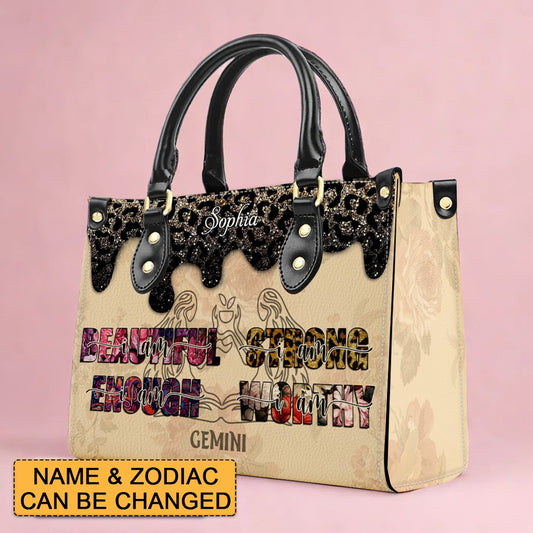 CHRISTIANARTBAG Personalized Leather Handbag - I Am Strong , I Am Loved , I Am Worthy , I Am Enough - CABLTHB02250424.