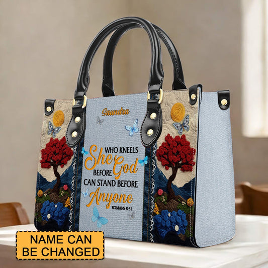 Christianartbag Handbags, She Who Kneels Before God Romans 8 31, Embroidered Handbag Design, Monogram Leather Handbag, Gifts for Women, CABLTB014825