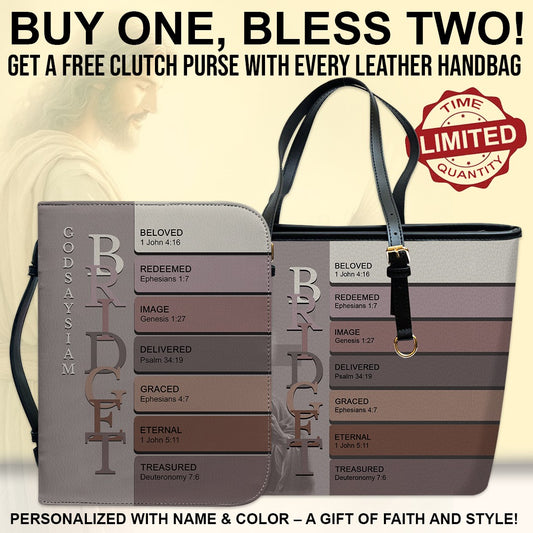 Uncover the sacred meaning of your name - Personalized Leather TOTE Handbag – Free Bible Cover Gift | CHRISTIANARTBAG 01060225