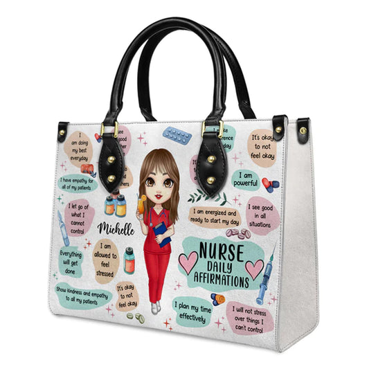 Personalized Nurse Affirmation Leather Handbag - Customizable Nursing Gift by CHRISTIANARTBAG