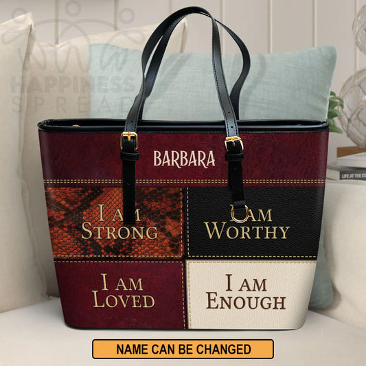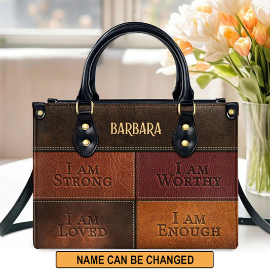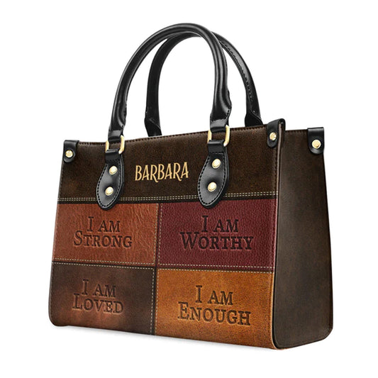 Christianart Handbag, Personalized Hand Bag, I Am Strong I Am Worthy I Am Loved I Am Enough, Personalized Gifts, Gifts for Women.
