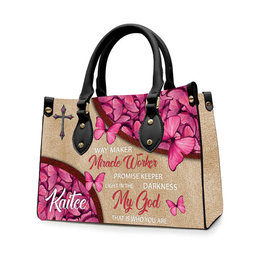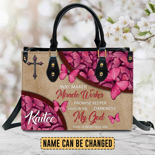 Christianartbag Handbags, Way Maker Miracle Worker Leather Handbag, Butterfly Pink Leather Handbag, Gifts for Women, CABLTB01311023.