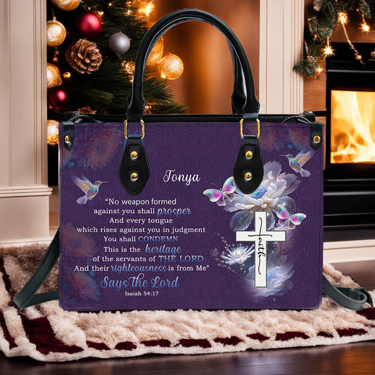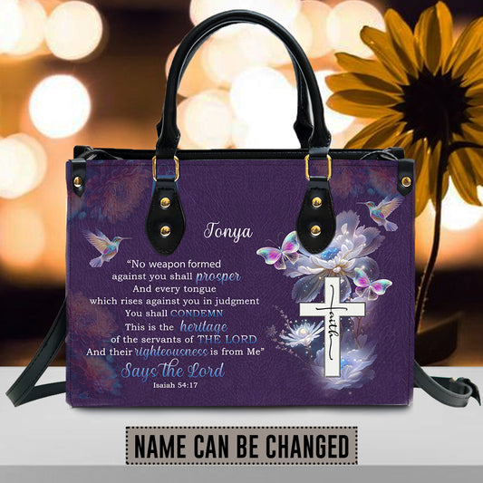 Christianartbag Handbags, Says The Lord Isaiah 54:17 Leather Handbag Purple, Personalized Bags, Gifts for Women, Christmas Gift, CABLTB01290923.