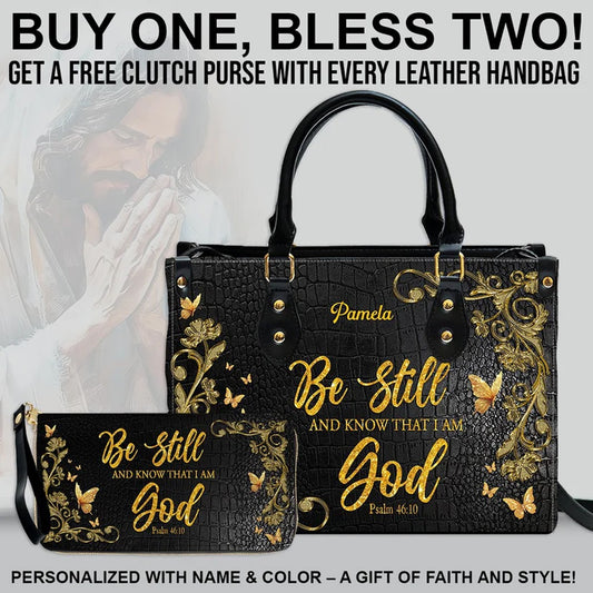 Personalized Leather Handbag with Custom Name & Bible Verse - Personalized Christian Leather Handbag & Wallet Set | CHRISTIANARTBAG™ CAB01010626