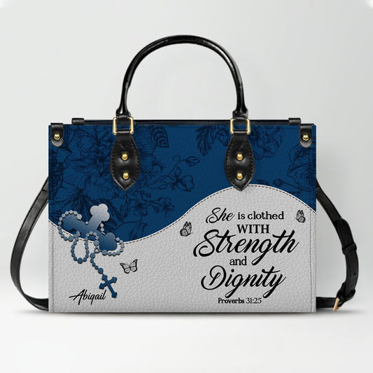 Sapphire Blue Personalized Leather Handbag – Christian Handbag with Bible Verses | Elegant Faith-Inspired Handbag