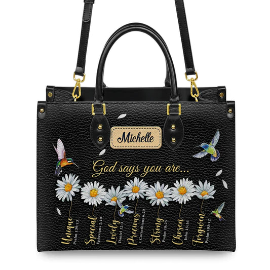 Christianart Designer Handbags, God Says You Are Daisy Hummingbird, Personalized Gifts, Gifts for Women.