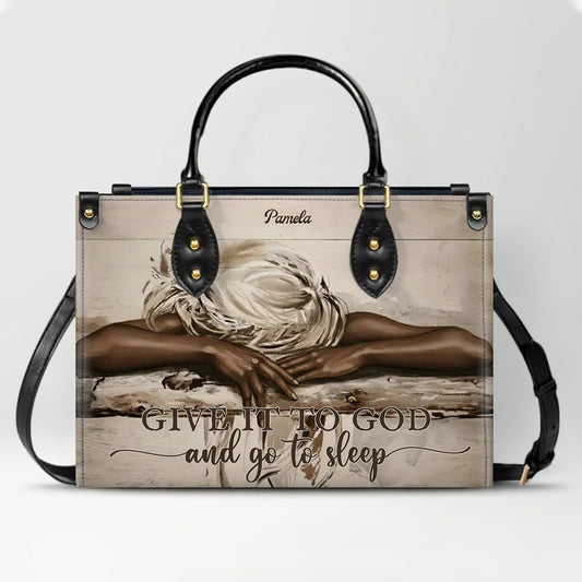 Personalized Christian Leather Handbag – “Give It To God and Go To Sleep” Faith Tote | Custom Name Purse by CHRISTIANARTBAG