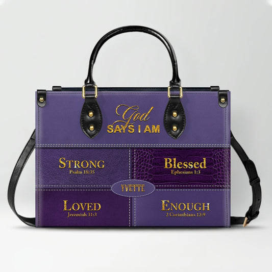 Personalized “God Says I Am” Leather Handbag for Christian Women – Custom Name & Color | CHRISTIANARTBAG 01122225