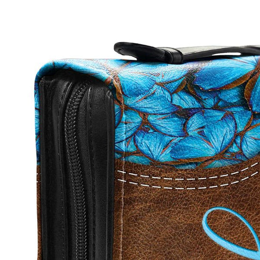 "Faith Over Fear" Embossed Leather Bible Cover with Blue Butterfly Motif - CHRISTIANARTBAG