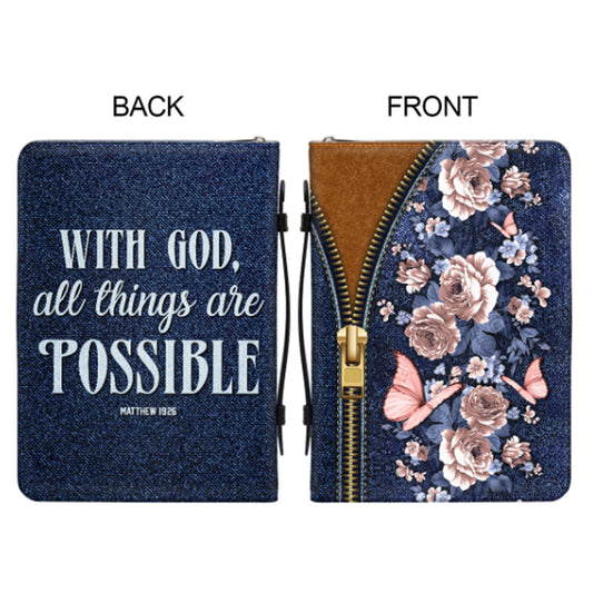 Christianartbag Bible Cover - With God All Things Are Possible - Personalized Denim Floral Bible Cover - CABBBCV03030823.