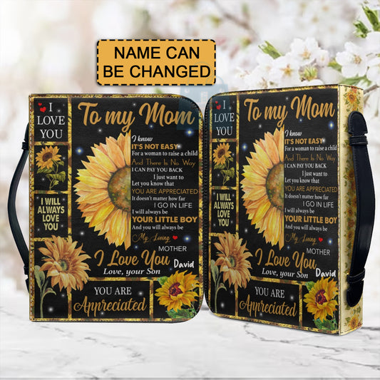 Christianartbag Bible Cover, To My Mom I Love You Sunflower Bible Cover, Personalized Bible Cover, Mom Bible Cover, Mother Days Gifts, CAB02201223.