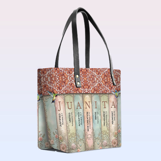 Personalized Leather Tote Bag with Bible Verses – Uncover the sacred meaning of your name | CHRISTIANARTBAG Leather TOTE Bag