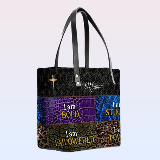 Personalized Leather Tote Bag with Bible Verses – I am STRONG | I am WORTHY | I am LOVED | I am ENOUGH | CHRISTIANARTBAG Leather TOTE Bag
