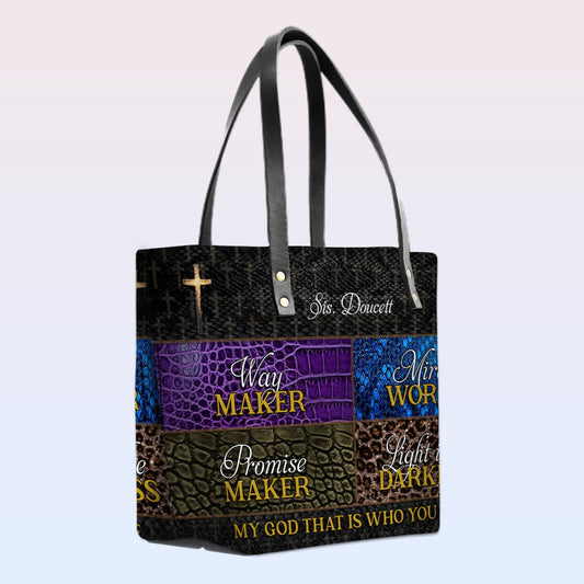 Personalized Leather Tote Bag with Bible Verses – Way Maker | Miracle Worker | Promise Keeper | Light in the Darkness | CHRISTIANARTBAG Leather TOTE Bag