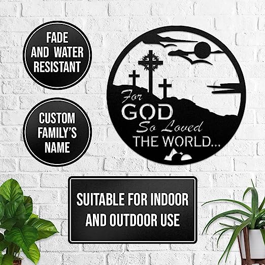 Christianartbag Metal Signs, For God So Loved The World, Christian Wall Art With Religious Scripture, Appreciation Gifts For Family