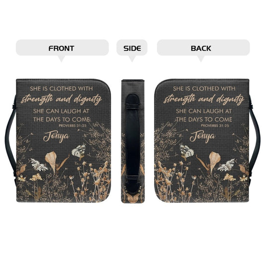 Christianartbag Bible Cover, She Is Clothed With Strength and Dignity Proverbs 31:25 Her Bible Cover, Personalized Bible Cover, Flower Bible Cover, Christian Gifts, CAB04201123.