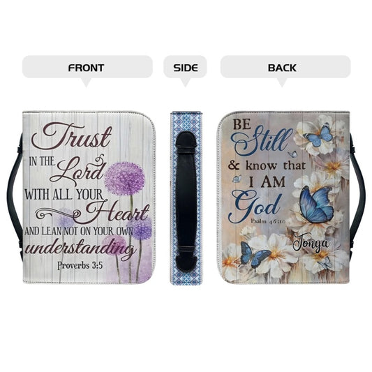 Christianartbag Bible Cover, Be Still And Know That I Am GOD Personalized Bible Cover, Butterfly and Flower Bible Cover, Personalized Bible Cover, Christmas Gift, CABBBCV01270923.