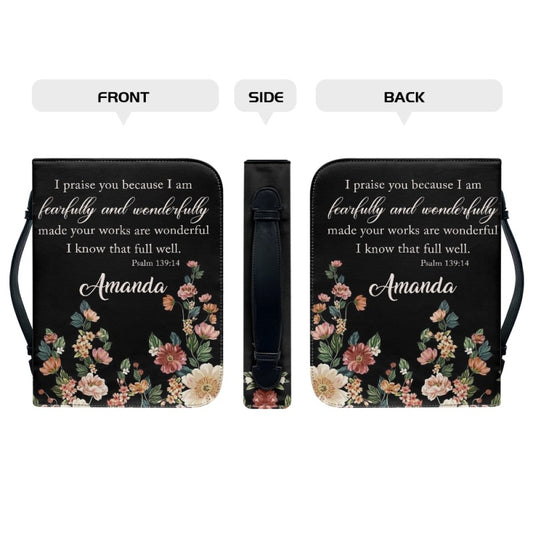 Christianartbag Bible Cover, I Praise You I Am Fearfully and Wonderfully Psalm 139:14 Her Bible Cover, Personalized Bible Cover, Flower Bible Cover, Christian Gifts, CAB02201123.