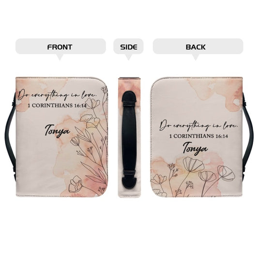 Christianartbag Bible Cover, Do Everything In Love 1 Corinthians 16:14 Bible Cover, Personalized Bible Cover, Flower Bible Cover, Christian Gifts, CAB07201123.