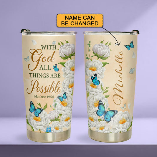 Discover the Perfect Gift: Butterfly With GOD All Things Are Possible Matthew 19 26 Stainless Steel Tumbler | CHRISTIANARTBAG