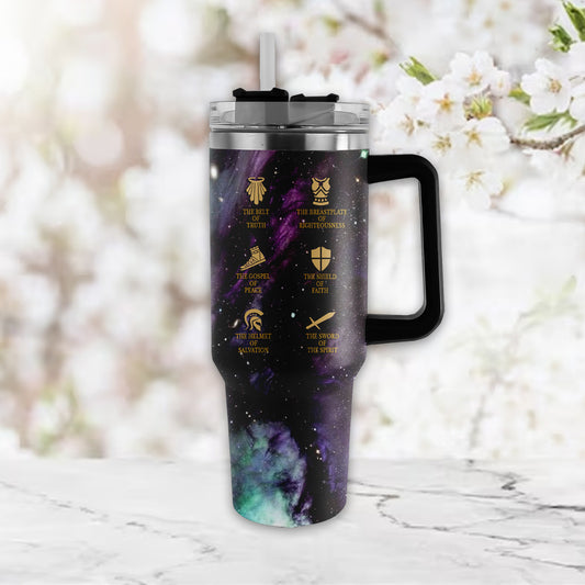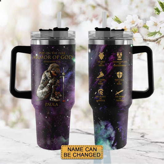 Christianartbag Drinkware, Put On The Full Armor Of God Personalized Tumbler With Handles, Personalized Tumbler With Handles, Tumbler, Christmas Gift, CABDR 01210124.